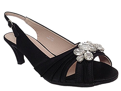 Best Seller! Ladies Missouri Comfort Plus Satin Gem Stone Kitten Heel Sling Back Wider Fit Wedding Sandals Shoes Size 3-8 (UK 8, Black) Review