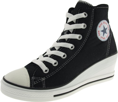 Best Seller! Maxstar 7-Holes Zipper Wedge Low Heels Sneakers Shoes Black UK Women 5.5 Review